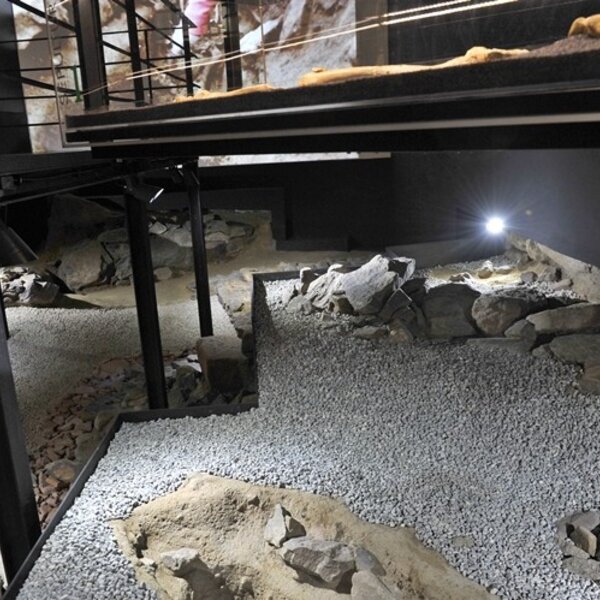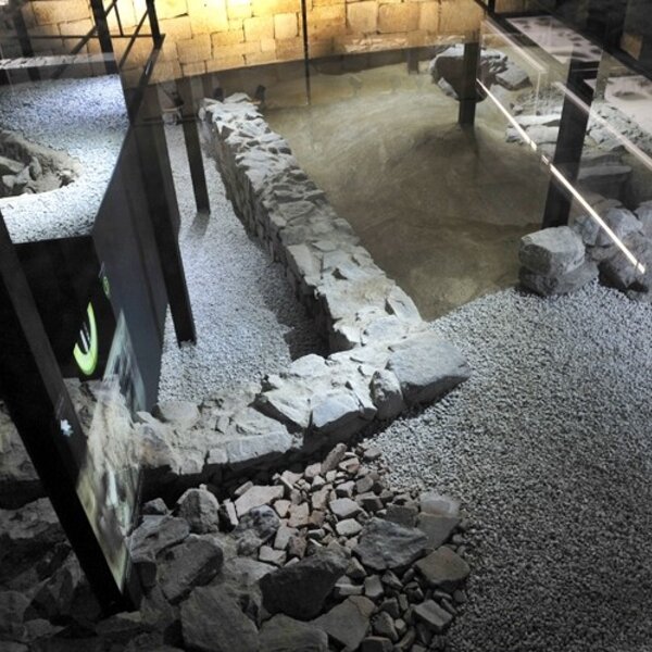 Estruturas arqueológicas acompanhada de uma videoprojeção