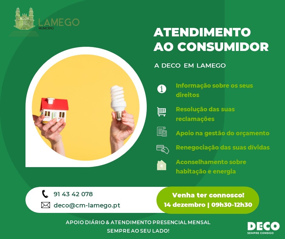 Mais informações ou esclarecimentos através do nº 914 342 078 ou do email: deco@cm-lamego.pt