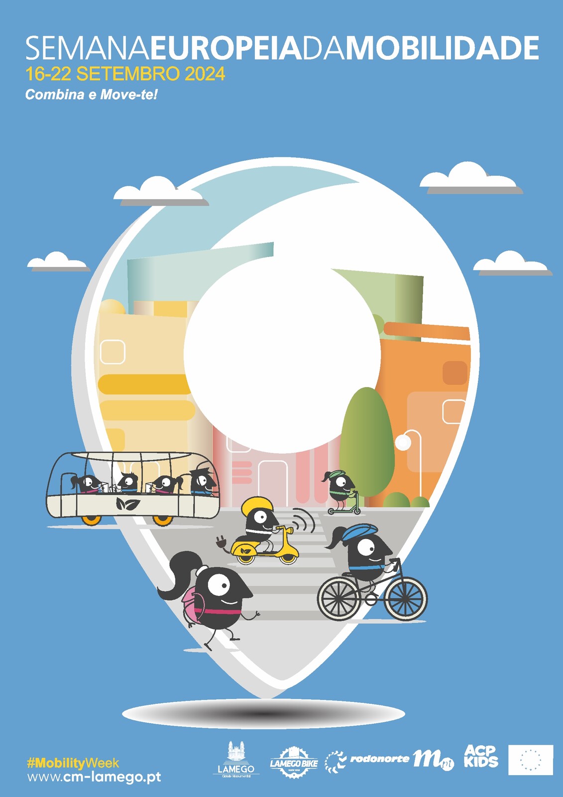 Pelo meio, a autarquia promove as ações "Move-te no Transporte Público “Verdinho” (oferta de bilhetes) e "Combina e Move-te em Segurança “ACP KIDS” e a prova "Vem pedalar connosco em Segurança", em parceria com a associação desportiva Lamego Bike.