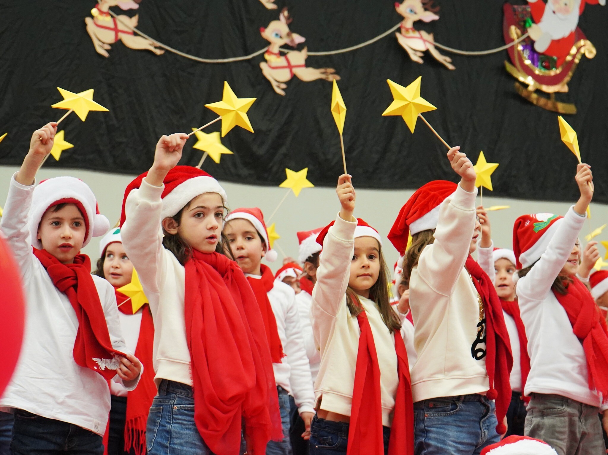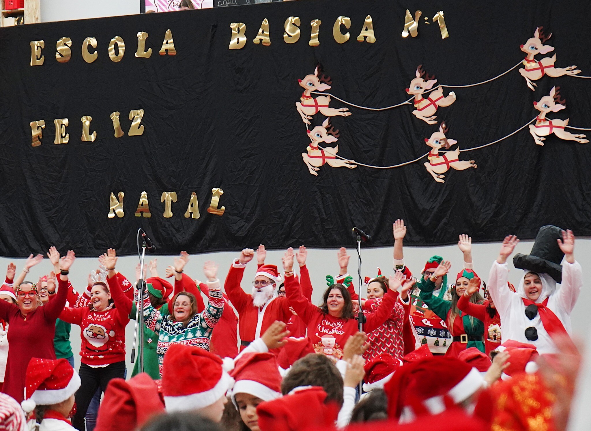 Todas as crianças participaram ativamente nesta celebração e entoaram belas canções de Natal. Até alguns pais e encarregados de educação subiram ao palco do Centro Multiusos e deram mais brilho à festa.