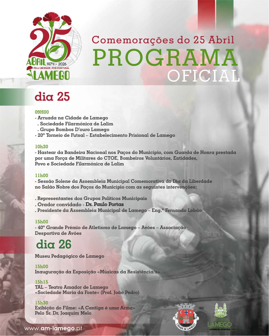 Uma programação organizada pela Assembleia Municipal de Lamego e pela Câmara Municipal de Lamego assente nos valores da liberdade e da democracia.
